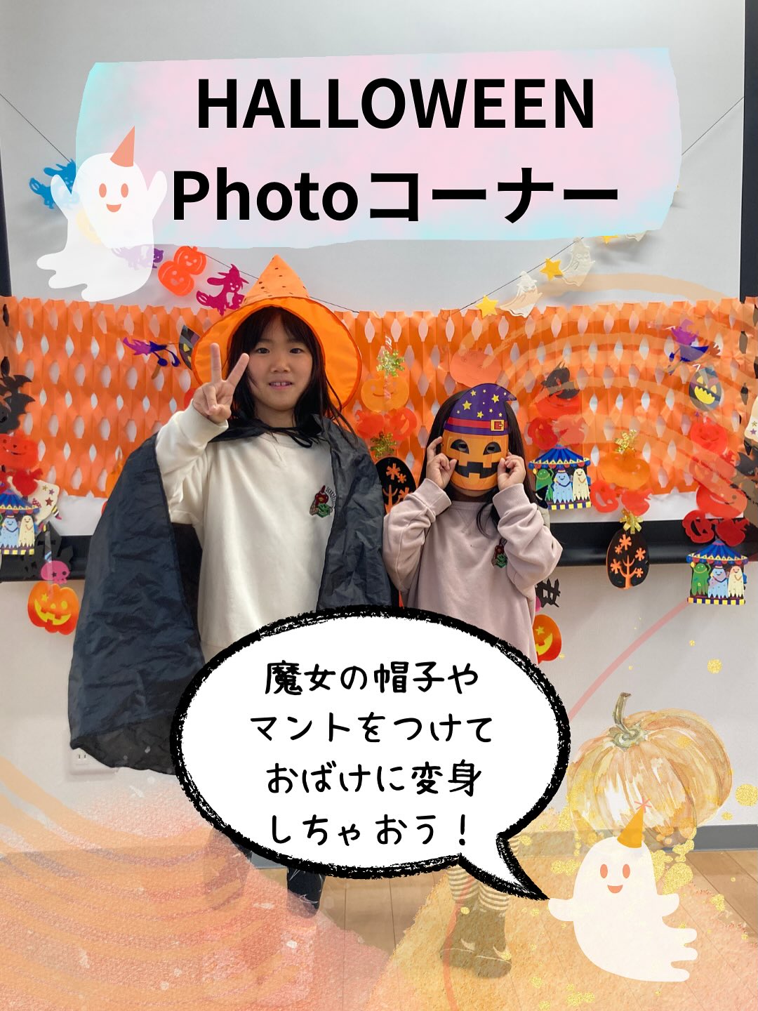 期間限定!フォトコーナー🎃 2025/10/24 📣ハロウィンの期間限定で、キッズルームにPhotoコーナーが登場中! 定期検診に来た際には、ぜひ魔女の帽子やマントをつけて写真を撮ってみてね🧙♀️👻🎃